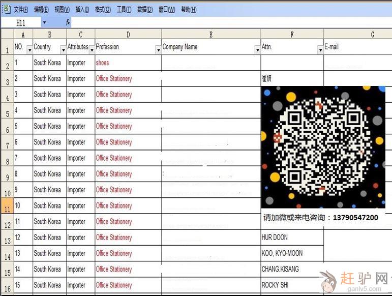 本人从2014年从事外贸行业,数年间在参展,邮件开发,网站收集等沉淀与积累了珍贵的外国贸易公司和企业的资料欢迎www.ganlv5.com。有:美国,英国,